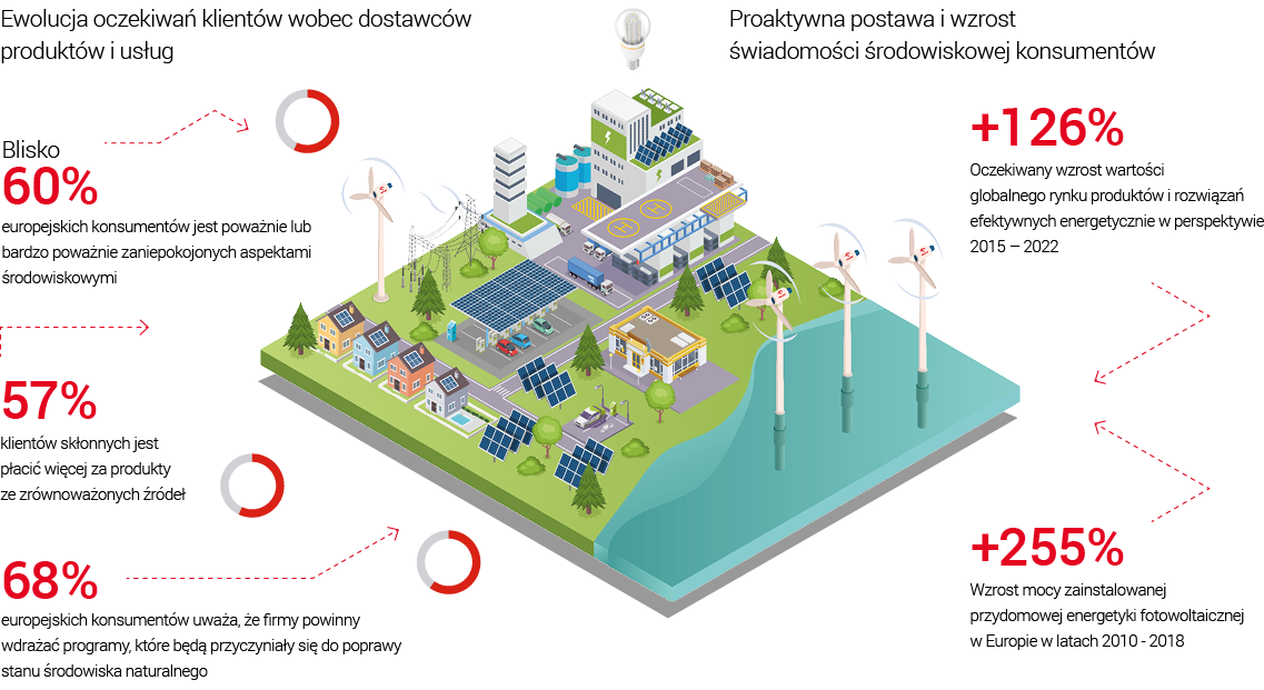 Do inwestowania w odnawialne źródła energii motywuje rosnąca świadomość ekologiczna społeczeństw, znajdująca wyraz w nowych, ambitnych celach klimatycznych kolejnych porozumień (Porozumienie Paryskie, Nowy Zielony Ład, RED II w UE, ograniczania produkcji opakowań jednorazowych), ukierunkowana na transformację energetyczną. Obecnie kraje, które zadeklarowały osiągnięcie neutralności emisyjnej w horyzoncie 2050-2060 (Chiny, Unia Europejska, Kanada, Japonia, Korea Południowa), włączając prawdopodobną deklarację USA, odpowiadają za 65% globalnych emisji. Rośnie też lista firm z sektora ropy naftowej i gazu, podejmujących to zobowiązanie. Wreszcie jesteśmy świadkami zmieniających się oczekiwań klientów, w tym preferencji co do cyfrowych kanałów dystrybucji i dopasowanej oferty produktowej z informacją o śladzie węglowym.